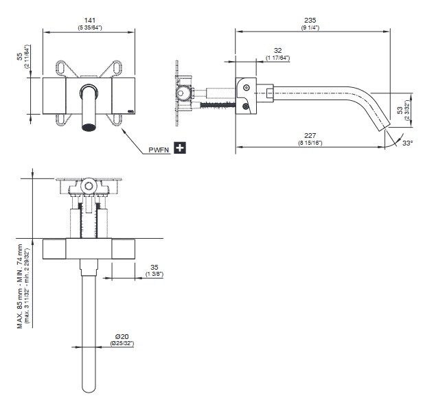 CEA Neutra Bateria umywalkowa ścienna z wylewką 23,5 cm element zewnętrzny Satin Stainless Steel NEU01S