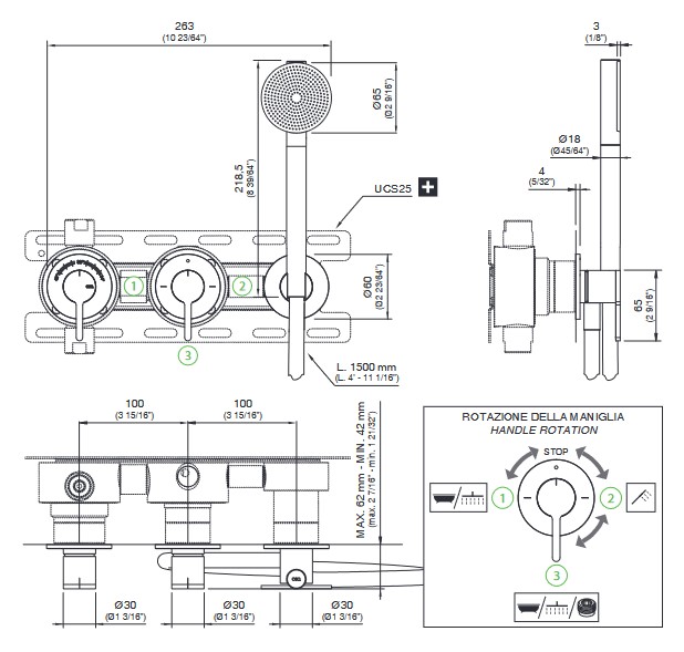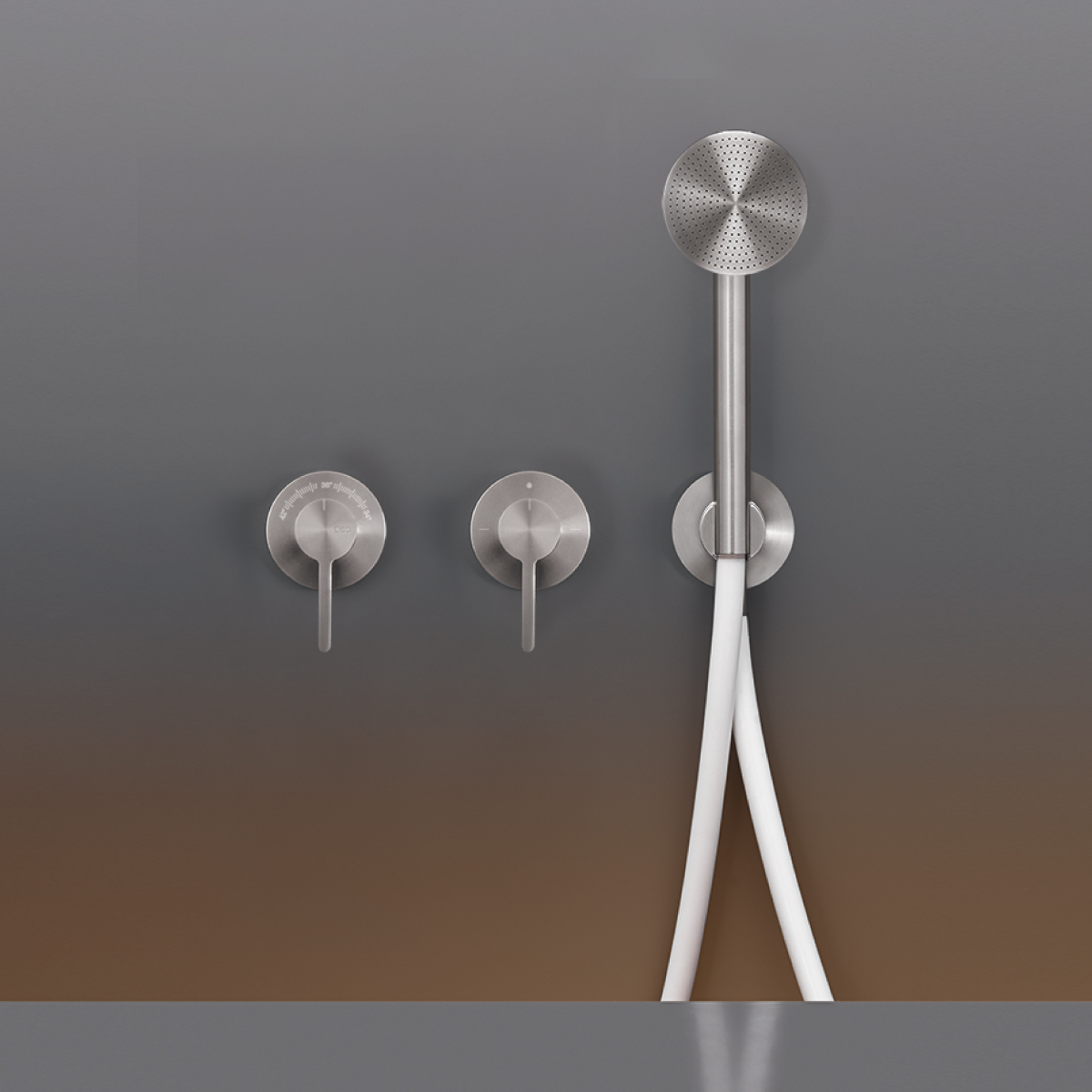 CEA Innovo Bateria wannowa/prysznicowa ścienna termostatyczna z przełącznikiem 2/3-drożnym, słuchawką i wężem element zewnętrzny Satin Stainless Steel INV60YWS