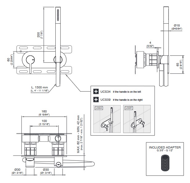 CEA Innovo Bateria wannowa/prysznicowa ścienna z słuchawką i wężem element zewnętrzny Satin Stainless Steel INV52WS