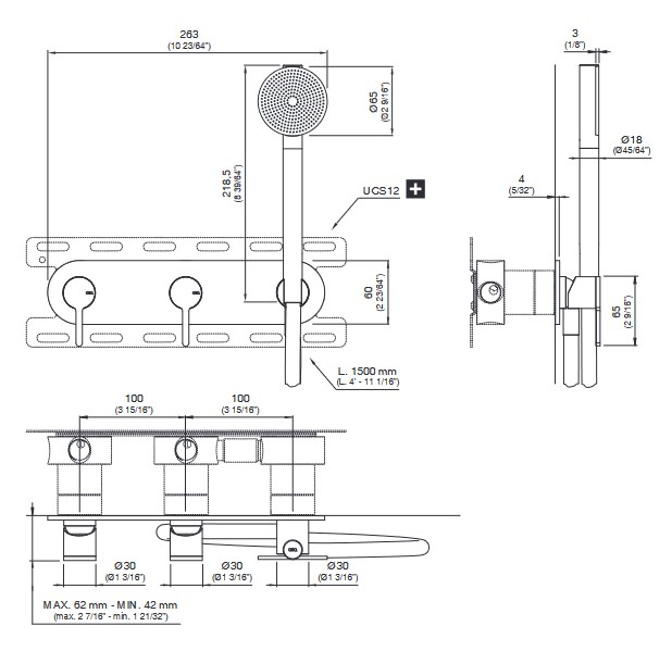 CEA Innovo Bateria wannowa/prysznicowa ścienna z słuchawką i wężem element zewnętrzny Satin Stainless Steel INV53YWS