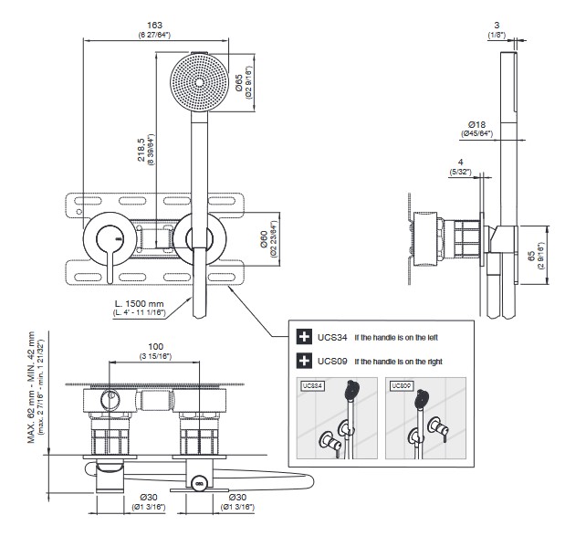 CEA Innovo Bateria wannowa/prysznicowa ścienna z słuchawką i wężem element zewnętrzny Satin Stainless Steel INV62YWS