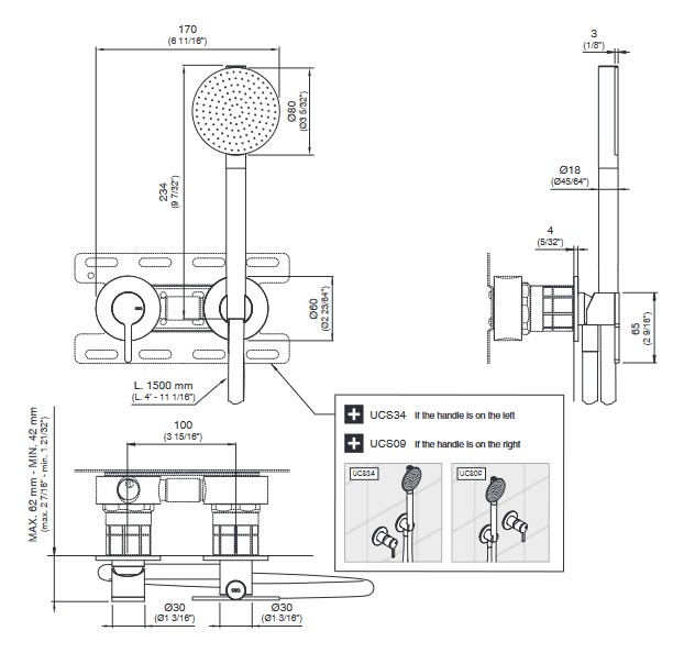 CEA Innovo Bateria wannowa/prysznicowa ścienna z słuchawką i wężem element zewnętrzny Satin Stainless Steel INV62HWS