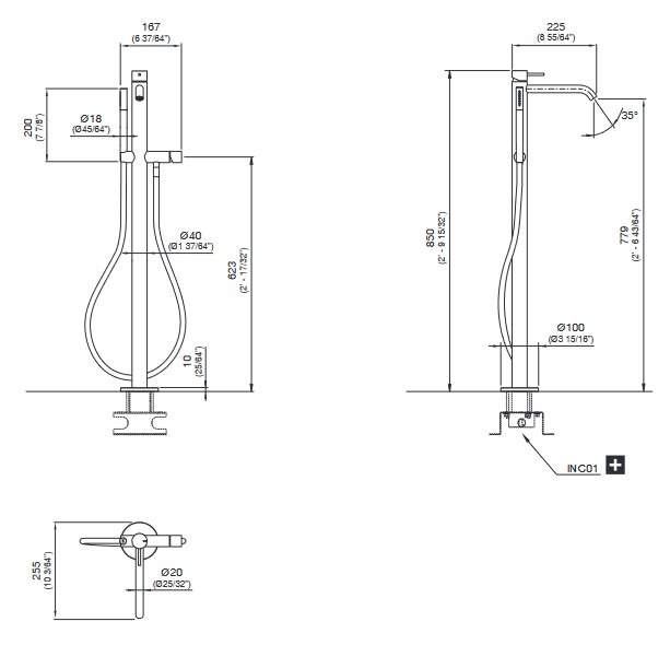 CEA Milo360 Bateria wannowa wolnostojąca ze słuchawką i wężem element zewnętrzny Satin Stainless Steel MIL19BKS