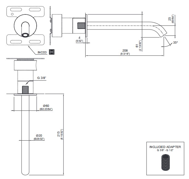 CEA Milo360 Wylewka umywalkowa ścienna 21,5 cm element zewnętrzny Satin Stainless Steel MIL48S
