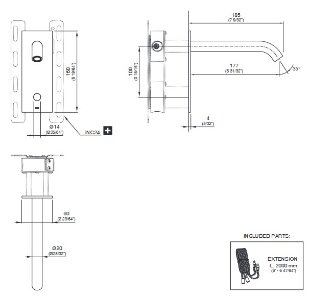 CEA Milo360 Bateria umywalkowa ścienna z czujnikiem ruchu i wylewką 18,5 cm element zewnętrzny Satin Stainless Steel MIL04RS