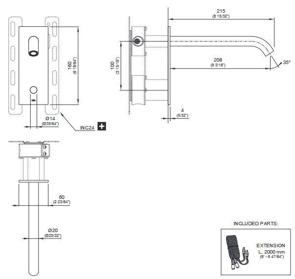 CEA Milo360 Bateria umywalkowa ścienna z czujnikiem ruchu i wylewką 21,5 cm element zewnętrzny Satin Stainless Steel MIL105RS