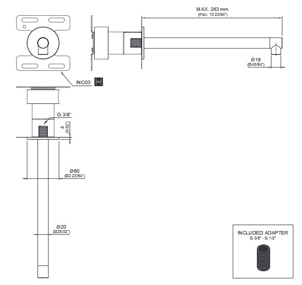CEA Wylewka umywalkowa ścienna 26,5 cm element zewnętrzny Satin Stainless Steel FRE04S
