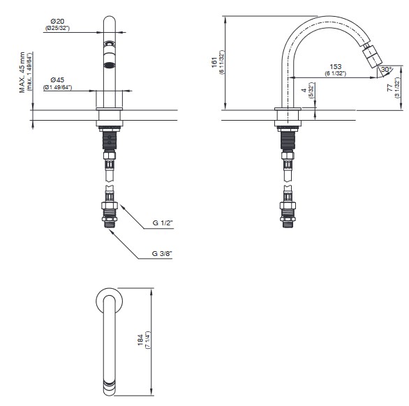 Wysięg wylewki: 15,3 cm