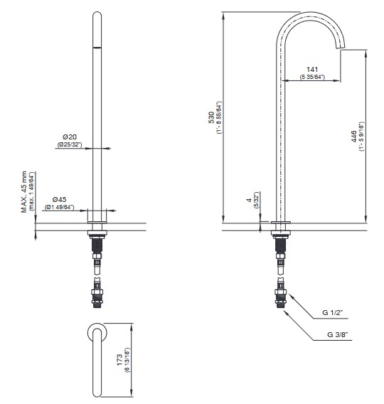CEA Wylewka umywalkowa obrotowa jednootworowa H53 cm Satin Stainless Steel FRE66S