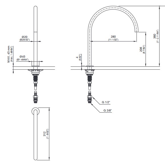 Wysokość wylewki: 20,6 cm