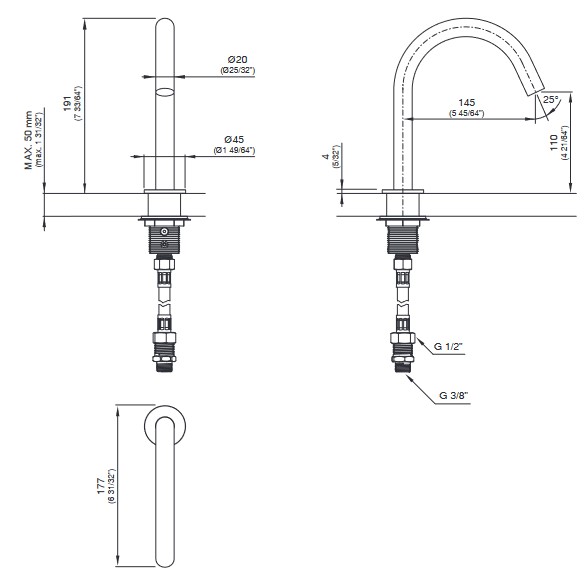 CEA Wylewka umywalkowa obrotowa jednootworowa H19,1 cm Satin Stainless Steel FRE105S
