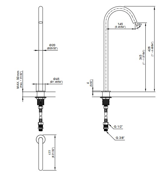 Wysokość wylewki: 34,5 cm