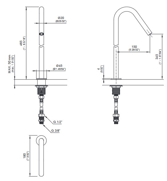 CEA Wylewka umywalkowa obrotowa jednootworowa H46,5 cm Satin Stainless Steel FRE71S