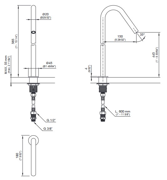 CEA Wylewka umywalkowa obrotowa jednootworowa H56,5 cm Satin Stainless Steel FRE72S