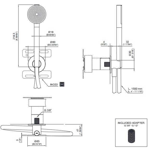 CEA Słuchawka prysznicowa z uchwytem ściennym i przyłączem wody element zewnętrzny Satin Stainless Steel FRE94S