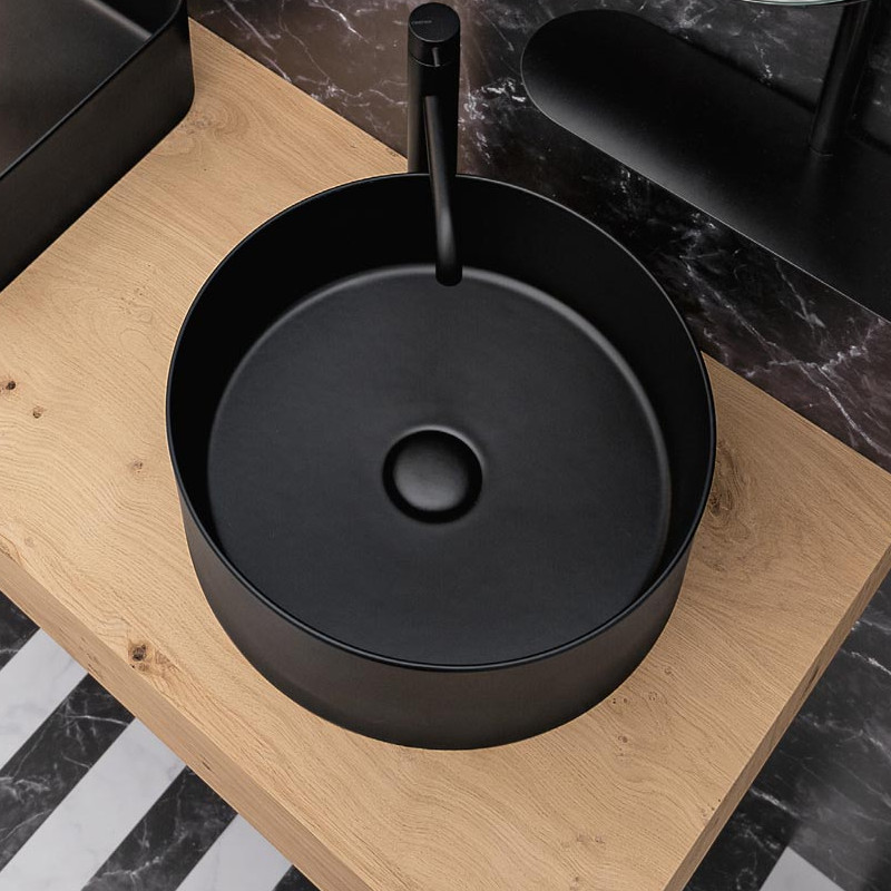 Axa MATE Umywalka stawiana na blat ∅ 40 cm z korkiem Click-clack Czarny matt 7820007+AF001507