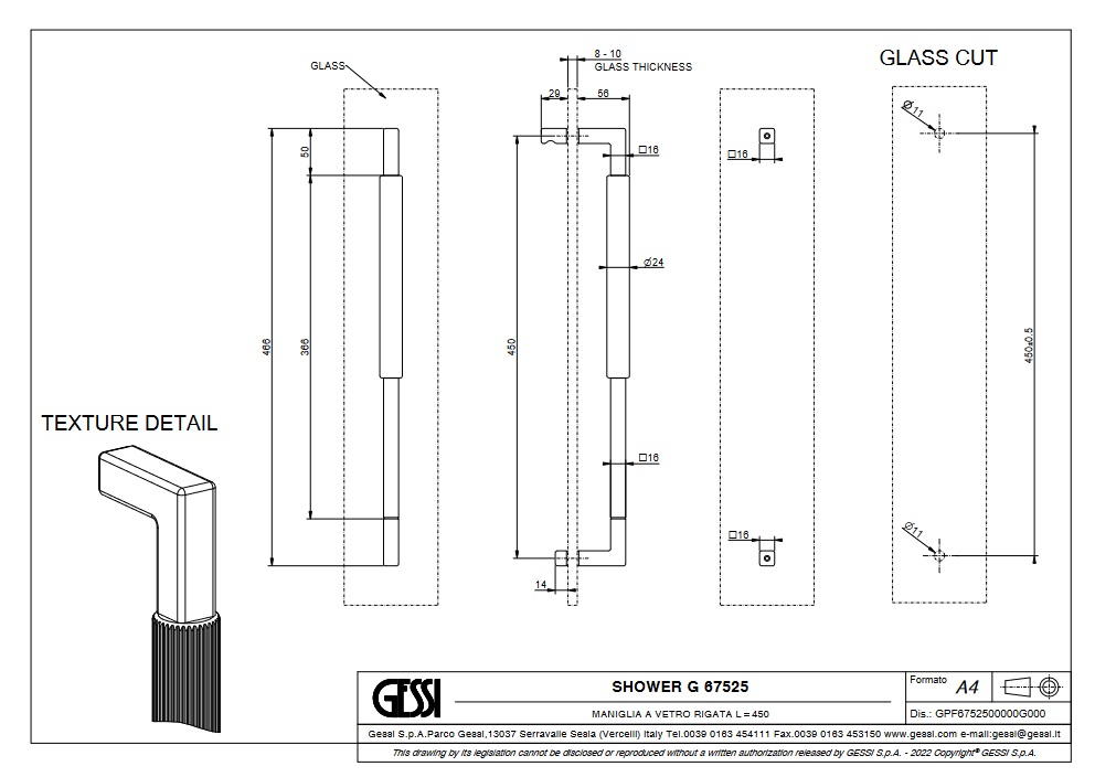 Gessi Rigato Uchwyt do drzwi prysznicowych 450 mm Chrom 67525.031