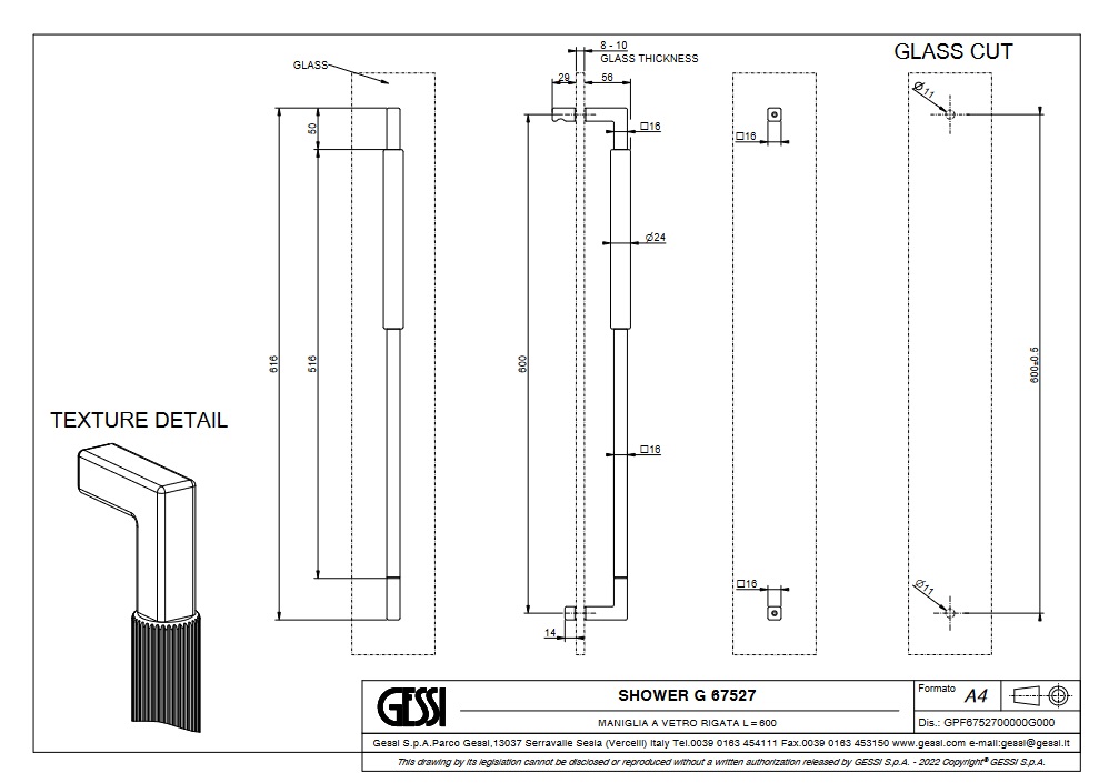 Gessi Rigato Uchwyt do drzwi prysznicowych 600 mm Chrom 67527.031
