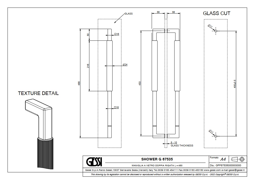 Gessi Rigato Podwójny uchwyt do drzwi prysznicowych 450 mm Chrom 67535.031