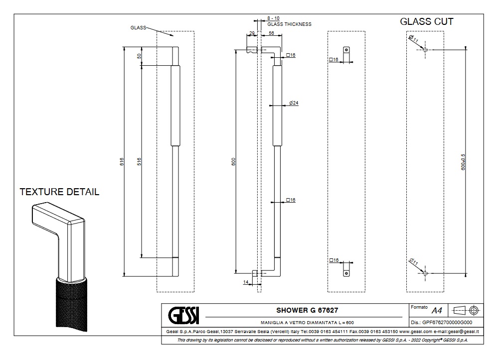 Gessi Diamantato Uchwyt do drzwi prysznicowych 600 mm Chrom 67627.031