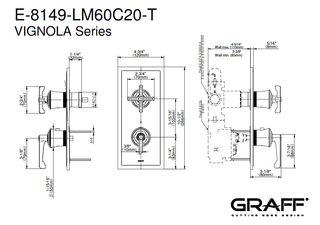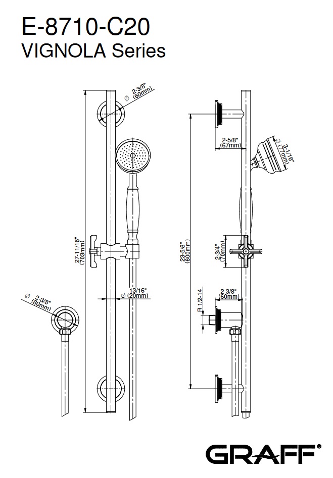 Graff Vignola Bateria natryskowa z zestawem prysznicowym, z termostatem i deszczownicą Ø 228 mm Chrom VIG03