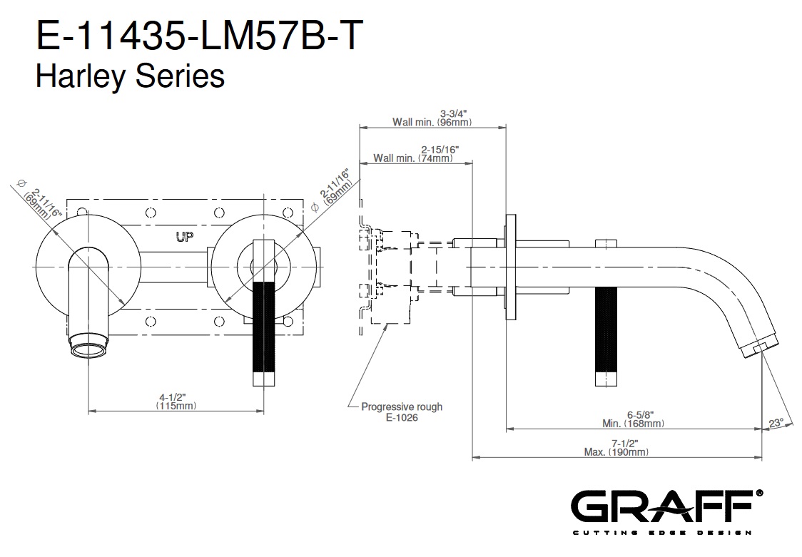 Graff Harley Bateria umywalkowa 2-otworowa podtynkowa PROGRESSIVE - element zewnętrzny Chrom E-11435-LM57B-T