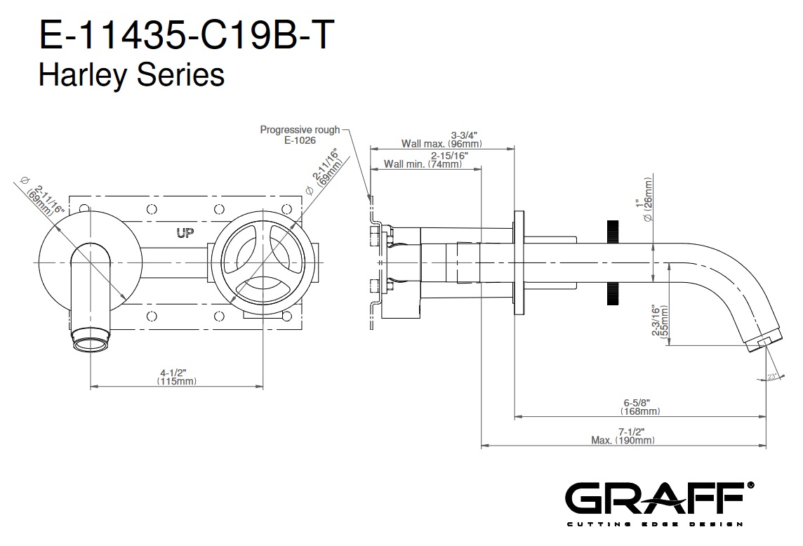 Graff Harley Bateria umywalkowa 2-otworowa podtynkowa PROGRESSIVE - element zewnętrzny Chrom E-11435-C19B-T