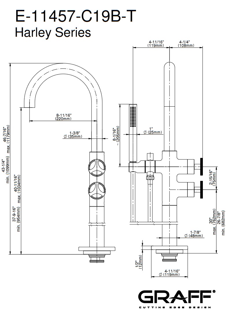 Graff Harley Bateria wannowa wolnostojąca z zestawem natryskowym Chrom E-11457-C19B-T