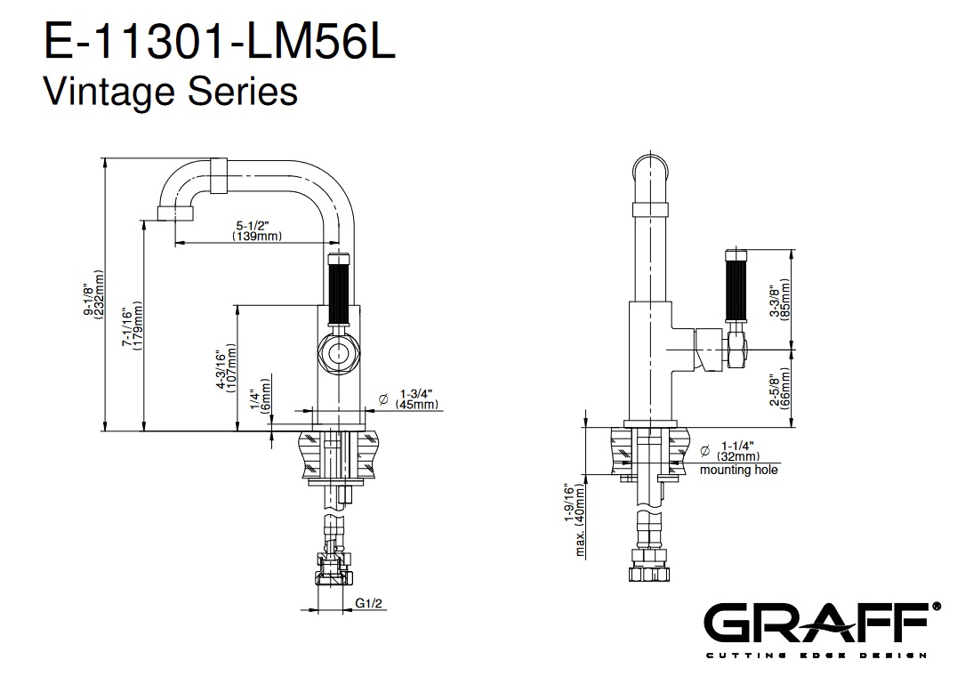 Graff Vintage Bateria umywalkowa Chrom E-11301-LM56L