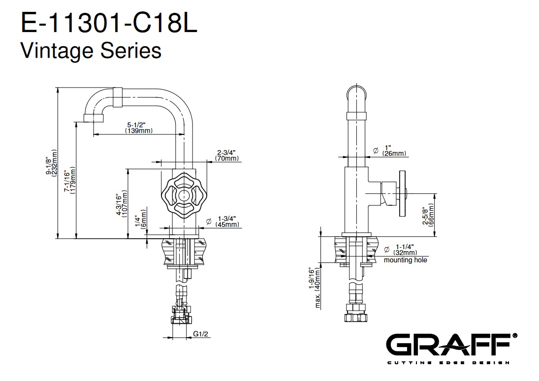 Graff Vintage Bateria umywalkowa Chrom E-11301-C18L