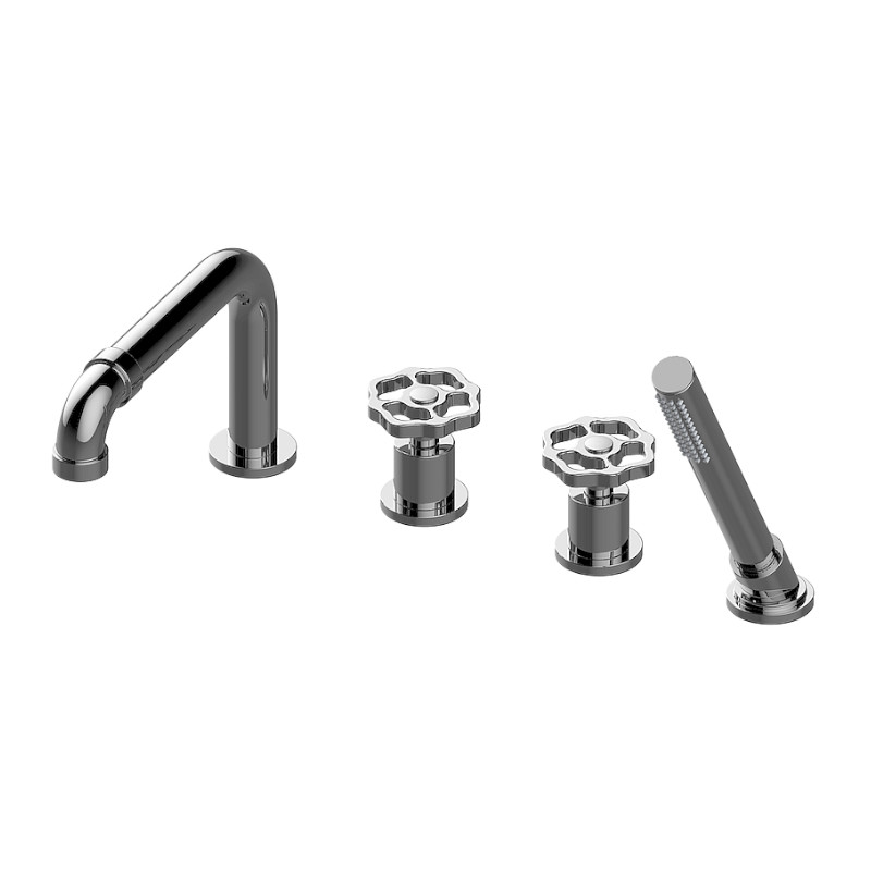 Graff Vintage Bateria wannowa 4-otworowa PROGRESSIVE z zestawem prysznicowym Chrom E-11359-C18B