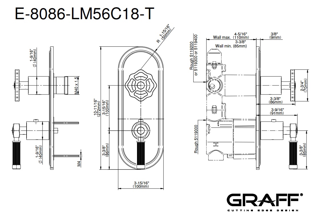 Graff Vintage Bateria natryskowa podtynkowa 2-uchwytowa - element zewnętrzny Chrom E-8086-LM56C18-T