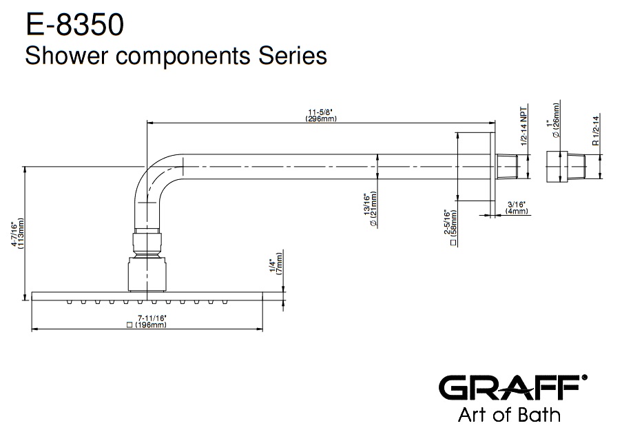Graff Sade Deszczownica prysznicowa 196x196 mm na ramieniu ściennym Chrom E-8350