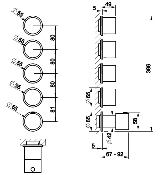 Gessi Habito Bateria prysznicowa termostatyczna z czterema wyjściami element zewnętrzny chrom 63438.031