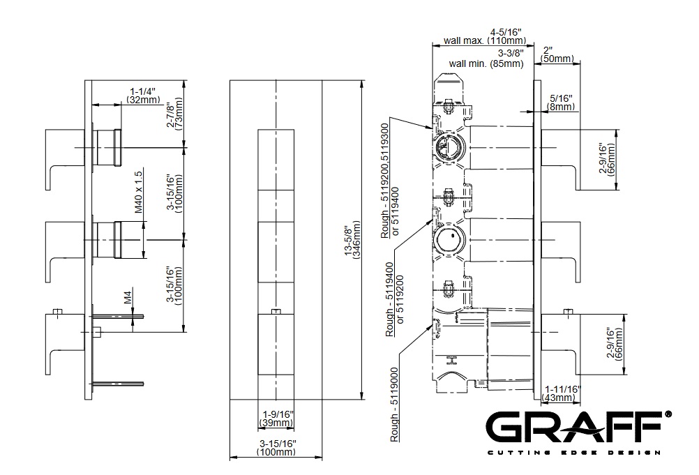 Graff Solar Bateria natryskowa podtynkowy 3-uchwytowa - element zewnętrzny Chrom E-8057-LM31E0-T