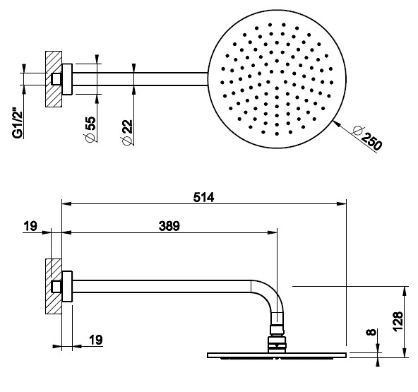 Gessi Habito Deszczownica ∅25 z ramieniem finox 66148.149