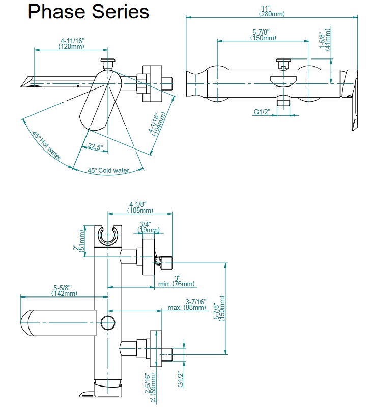 Graff Phase Bateria wannowo-natryskowa ścienna bez zestawu prysznicowego Chrom EX-6675-LM45W