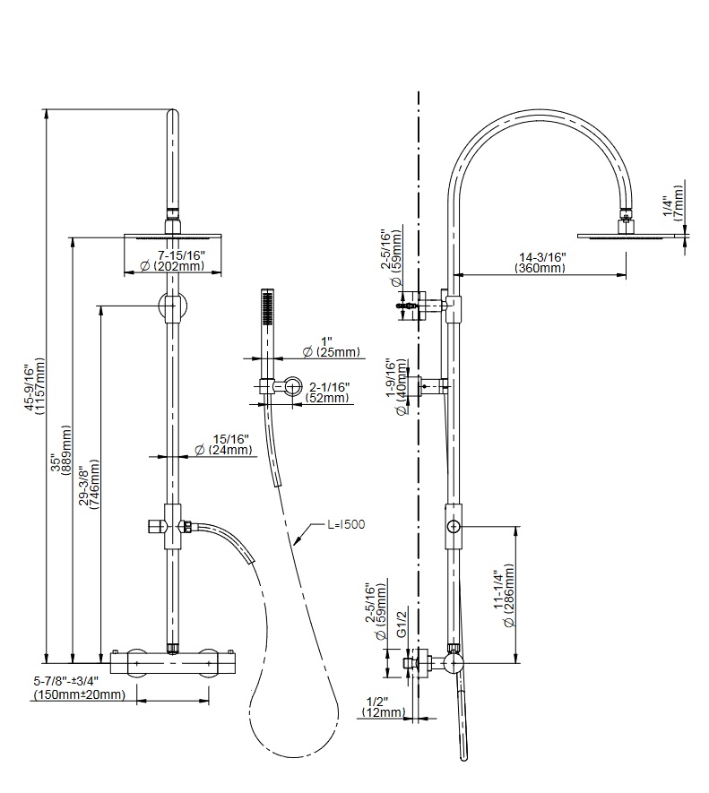 Graff Phase Zestaw natryskowy termostatyczny z deszczownicą Ø 202 mm z zestawem prysznicowym Chrom EX-8940-RHT