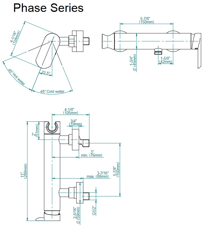 Graff Phase Bateria natryskowa ścienna bez zestawu prysznicowego Chrom EX-6671-LM45W