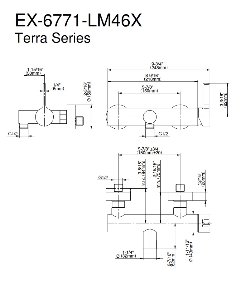 Graff Terra Bateria natryskowa ścienna Chrom EX-6771-LM46X