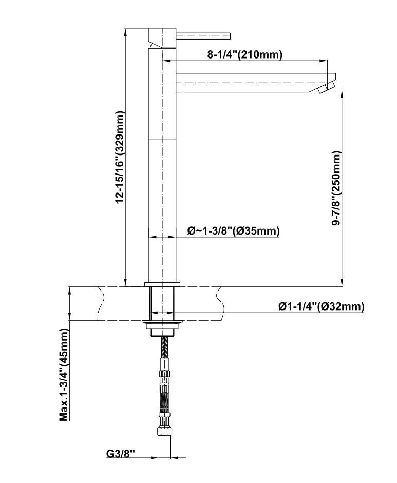 Graff M.E./M.E.25 Bateria umywalkowa wysoka jednouchwytowa 210 mm Chrom E-6108-LM41