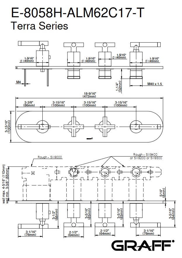 Graff M.E./M.E.25 Bateria natryskowa termostatyczna 4-uchwytowa podtynkowa - element zewnętrzny Chrom E-8058H-RH0-T