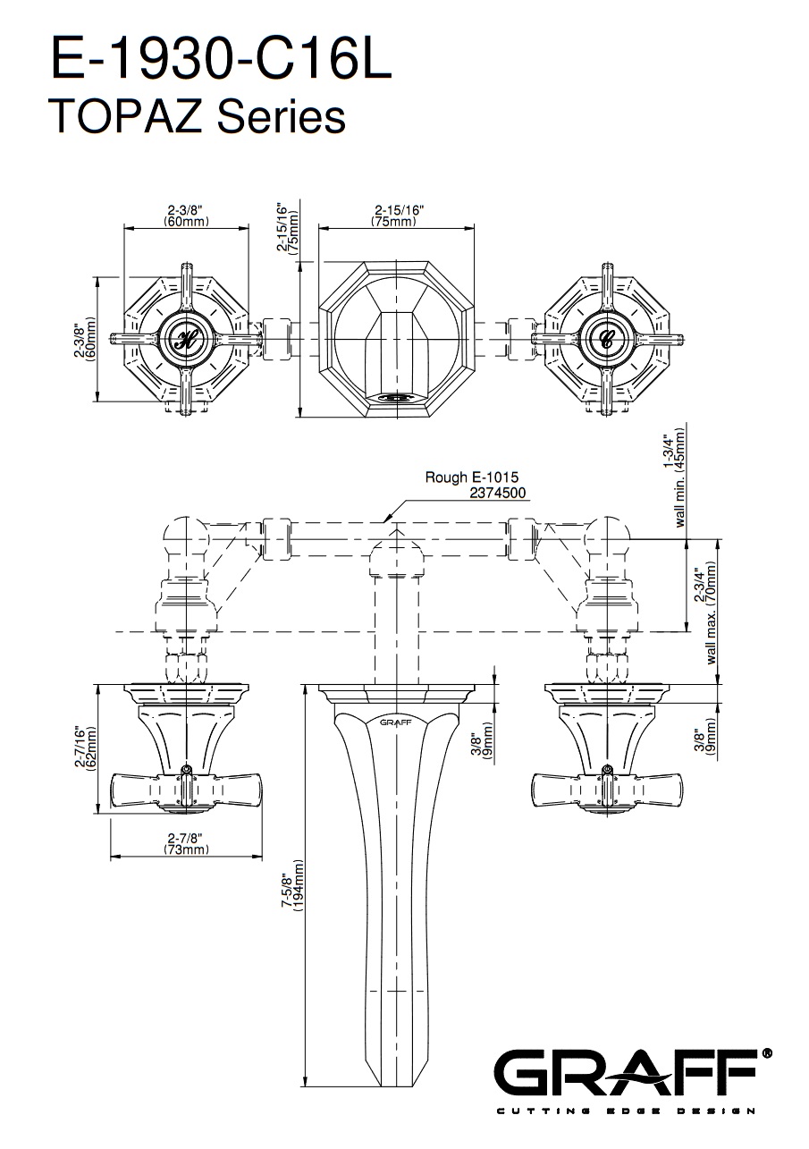Graff Topaz Bateria umywalkowa 3-otworowa podtynkowa - element podtynkowy Chrom E-1930-C16L