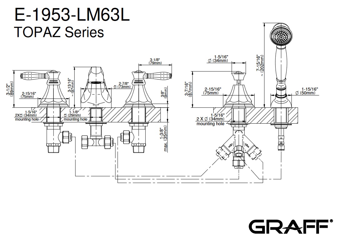 Graff Topaz Bateria wannowa 5-otworowa z zestawem prysznicowym Chrom E-1953-LM63L