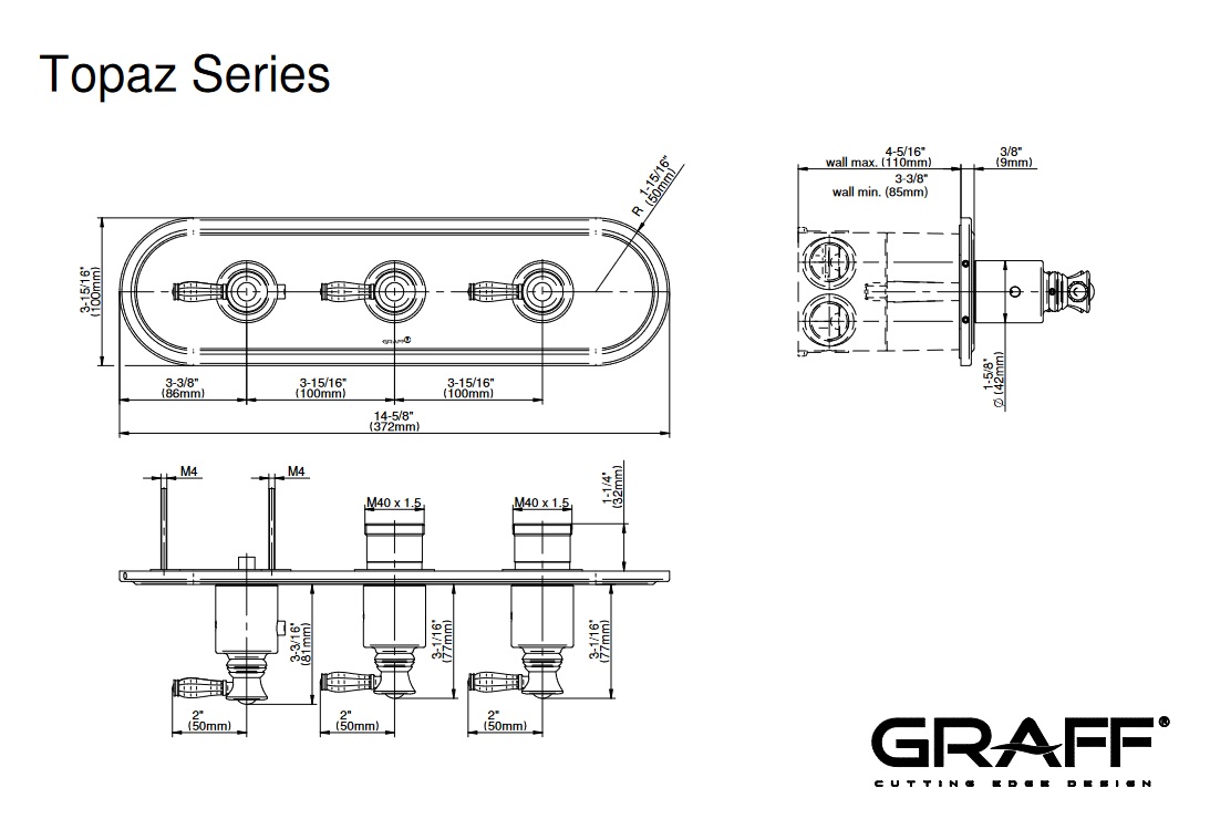 Graff Topaz Bateria prysznicowa termostatyczna 3-uchwytowa podtynkowa - element zewnętrzny Chrom E-8087H-LM14E0-T