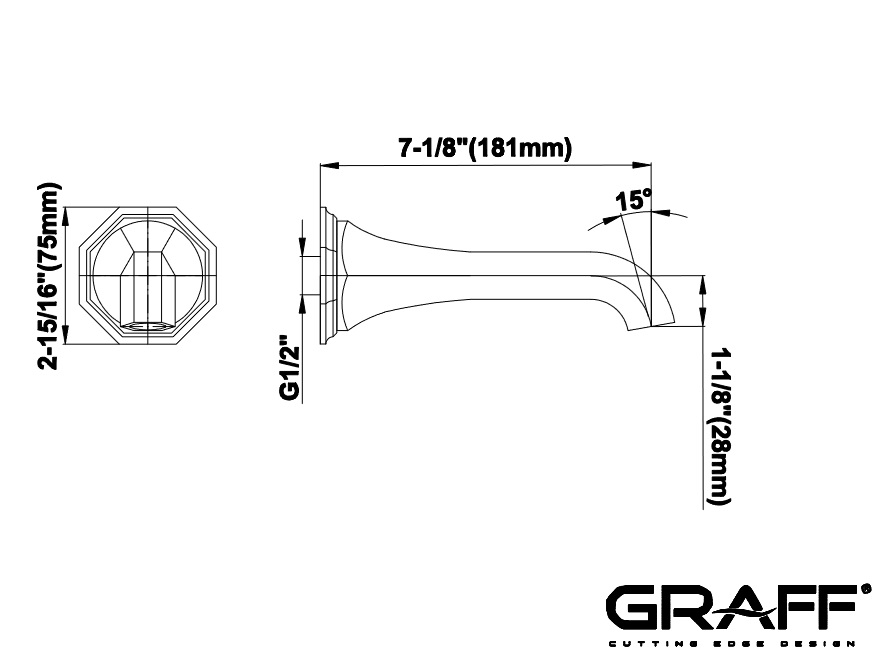 Graff Topaz Wylewka wannowa ścienna 181 mm Chrom E-8560