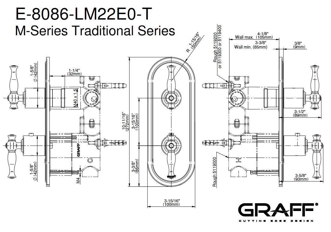 Graff Lauren Bateria prysznicowa termostatyczna 2-uchwytowa podtynkowa - element zewnętrzny Chrom E-8086-LM22E0-T