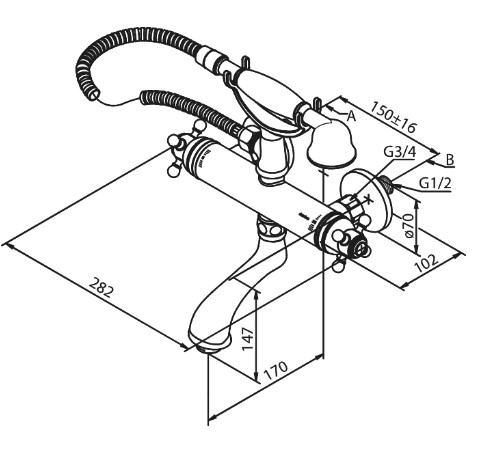 Damixa Tradition Bateria wannowo-prysznicowa termostatyczna ścienna chrom 375030000