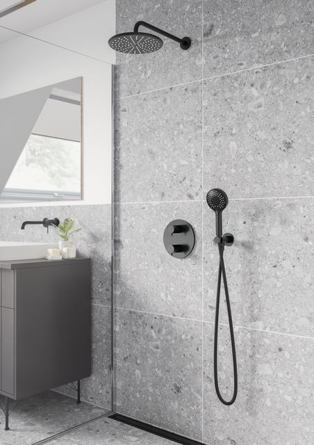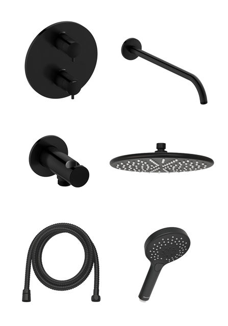 Damixa Silhouet Zestaw prysznicowy termostatyczny podtynkowy element zewnętrzny czarny mat 571236100
