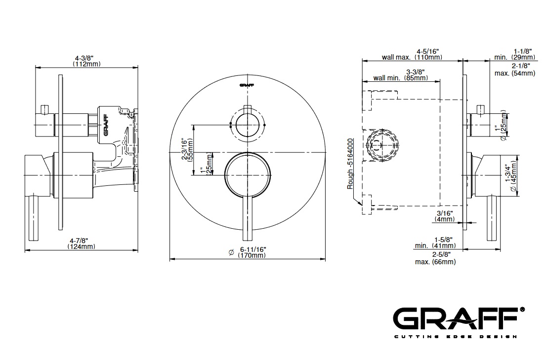 Graff M.E./M.E.25 Bateria natryskowa termostatyczna podtynkowa z przełącznikiem 2-drożnym - element zewnętrzny Chrom E-17020-LM45N-T